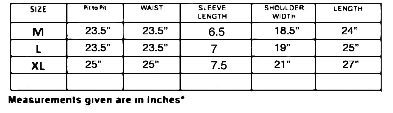 Size chart is available on last slide for reference